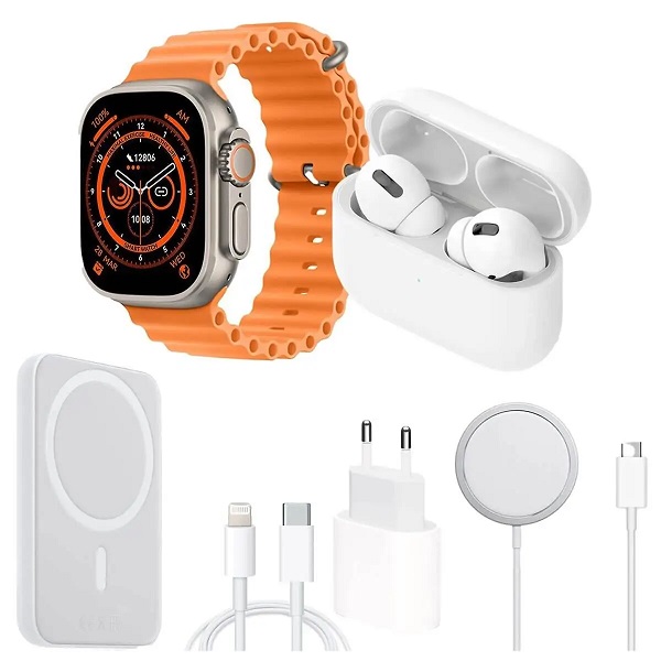 MVP-135 Smart Watch And Bluetooth Earphones Set With 3000mAh Magnetic Wireless Charger