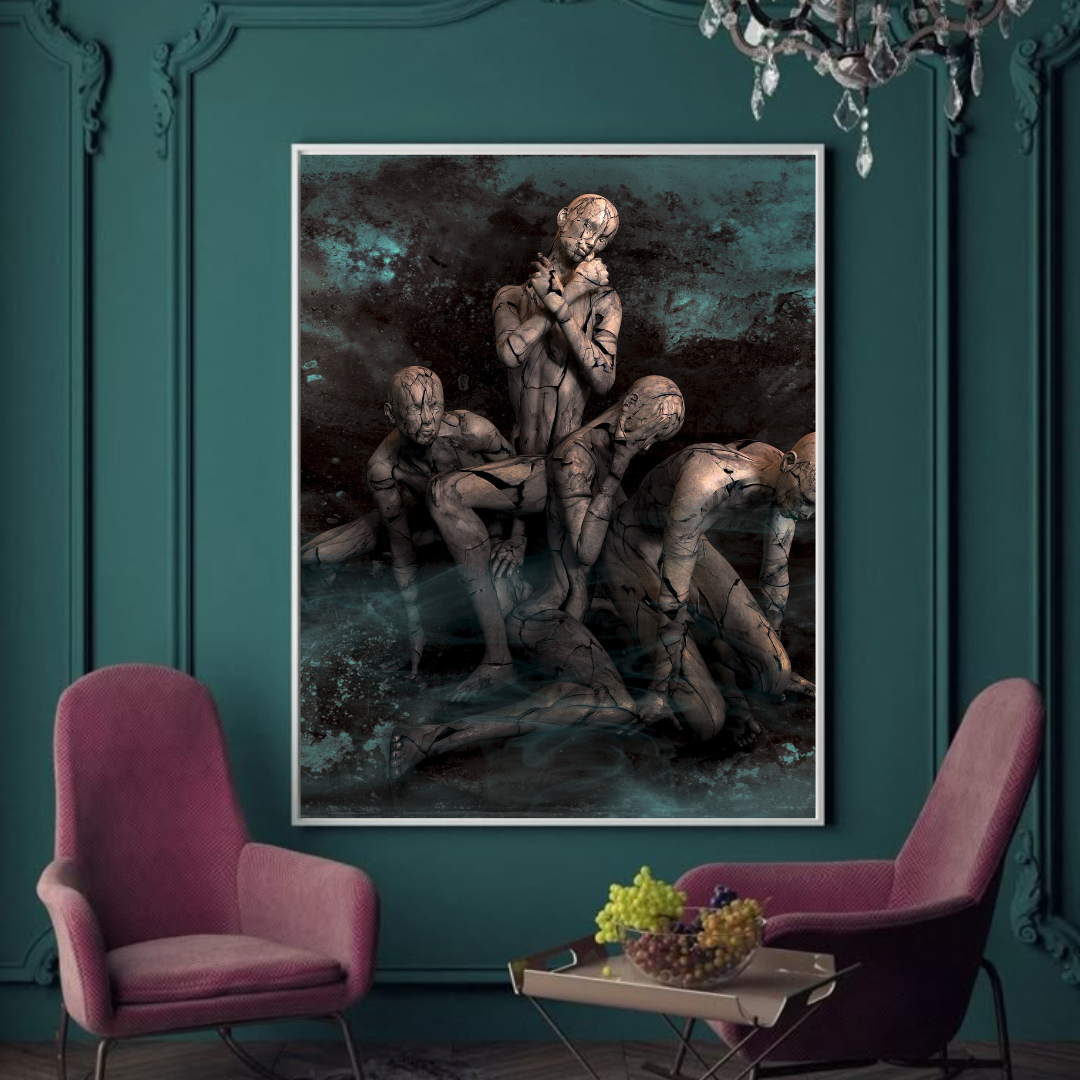 Dive into the depths of human resilience with “Fractured Awakening”, a stunning high-quality canvas print that captures the raw beauty of struggle and transformation. Featuring cracked, statue-like figures emerging from the shadows, this piece symbolizes the battle between despair and hope, breaking free from limitations, and the rebirth of the soul. With its moody textures and deep, ethereal hues, this artwork is a thought-provoking statement piece, perfect for contemporary and introspective spaces. R3600,00 – R6000,00Price range: R3600,00 through R6000,00 To pick up today Free Payment Methods: