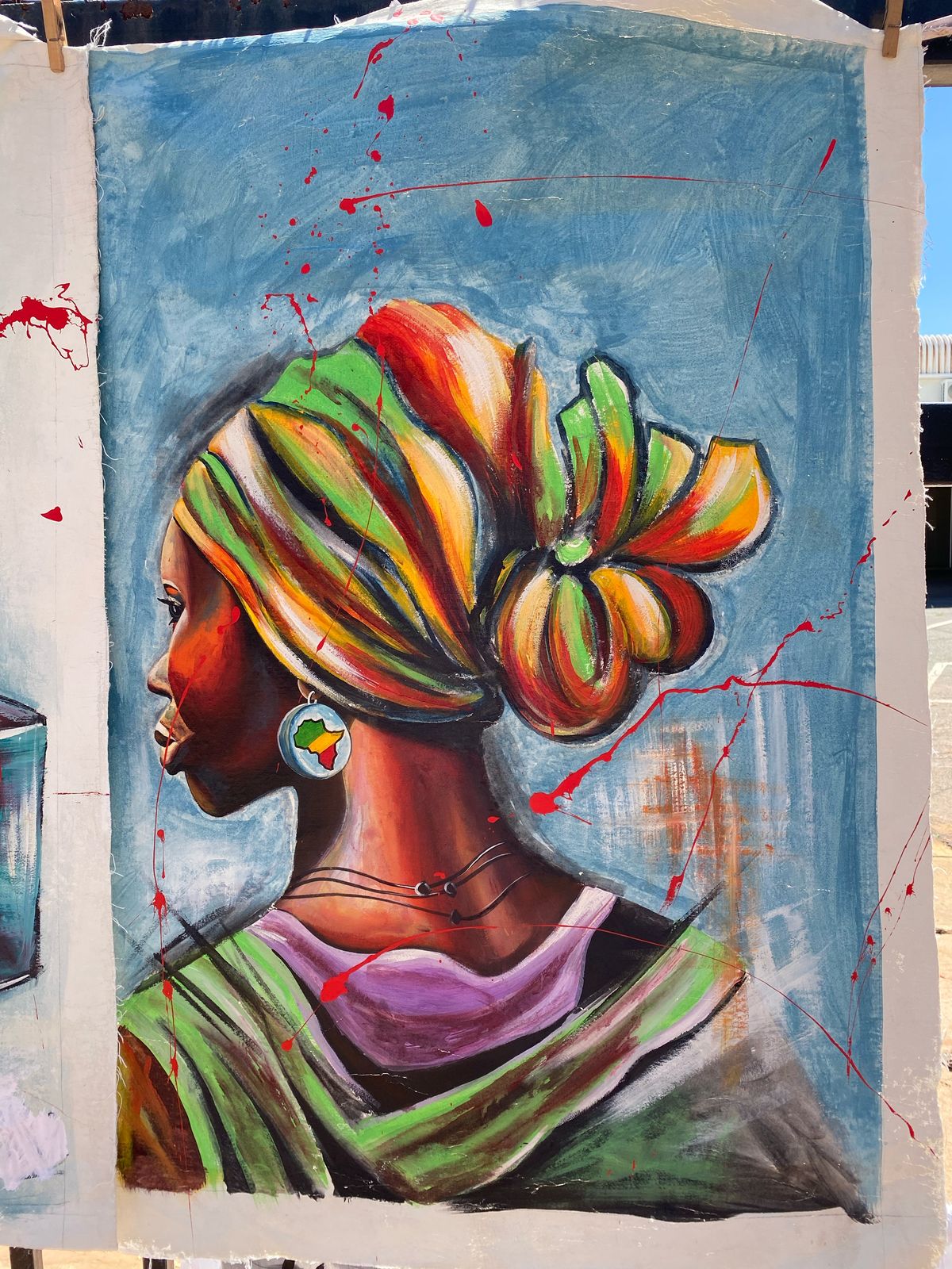 Measurements: 1 meter by 0.25 meters A captivating portrayal of African grace and heritage, Roots of Elegance celebrates culture, identity, and strength. The subject, adorned in a vibrant headwrap and draped in rich earthy tones, exudes a quiet confidence and timeless beauty. The intricate details—from the striking earring featuring the African continent to the delicate textures of the fabric—tell a story of deep-rooted pride and tradition. Set against a textured blue backdrop with bold splashes of red, this artwork merges realism with expressive abstraction, making it a powerful and meaningful addition to any art collection. Perfect for those who appreciate contemporary African artistry with a cultural narrative. R4200,00 To pick up today Free Payment Methods: